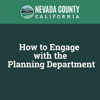 The Planning Department applies community land-use policies and strives to meet the needs of individuals and businesses. Its goal is to protect the environment to ensure that Nevada County remains a desirable place to live, work and recreate. Learn more at www.NevadaCountyCa.gov/Planning.