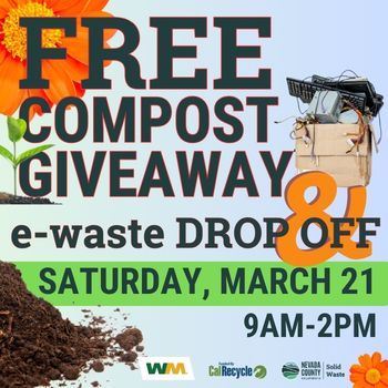 Nevada County will host a free e-waste drop-off and compost giveaway event for Nevada County residents Saturday, March 21, 9 a.m. – 2 p.m. at the Nevada County Government Center, 950 Maidu Ave., Nevada City.