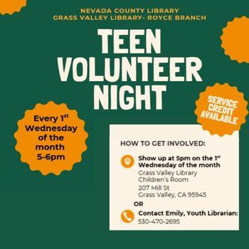 For more information about this program and other library services, visit https://nevadacountyca.libcal.com or call 530-265-7050. Don’t forget to follow Nevada County Library on Instagram and Facebook for the latest program updates.