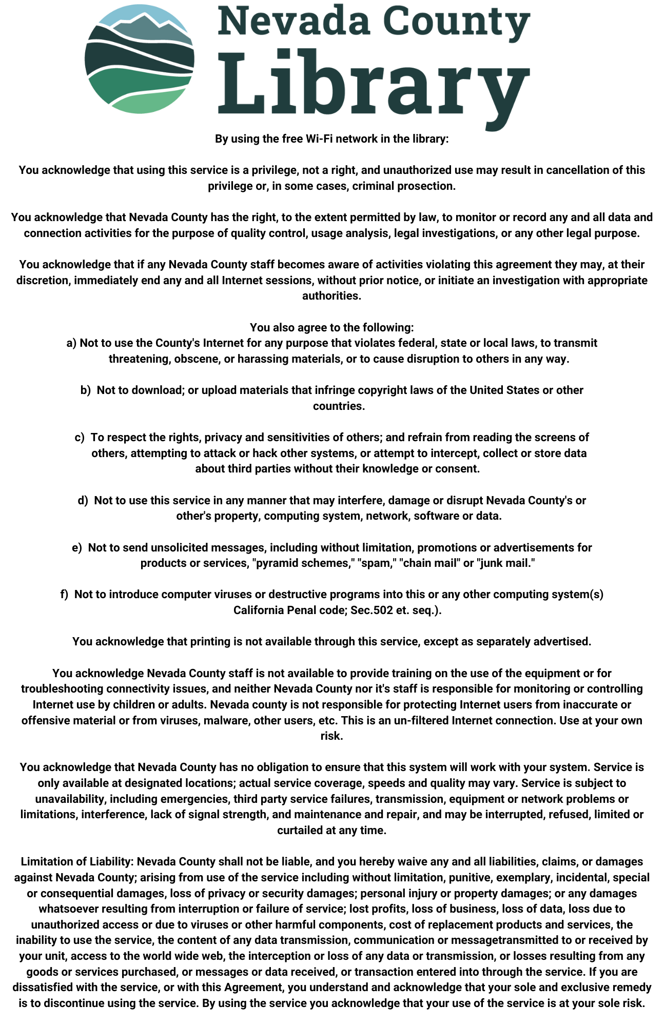 Public computers are available at all Nevada County Library locations.