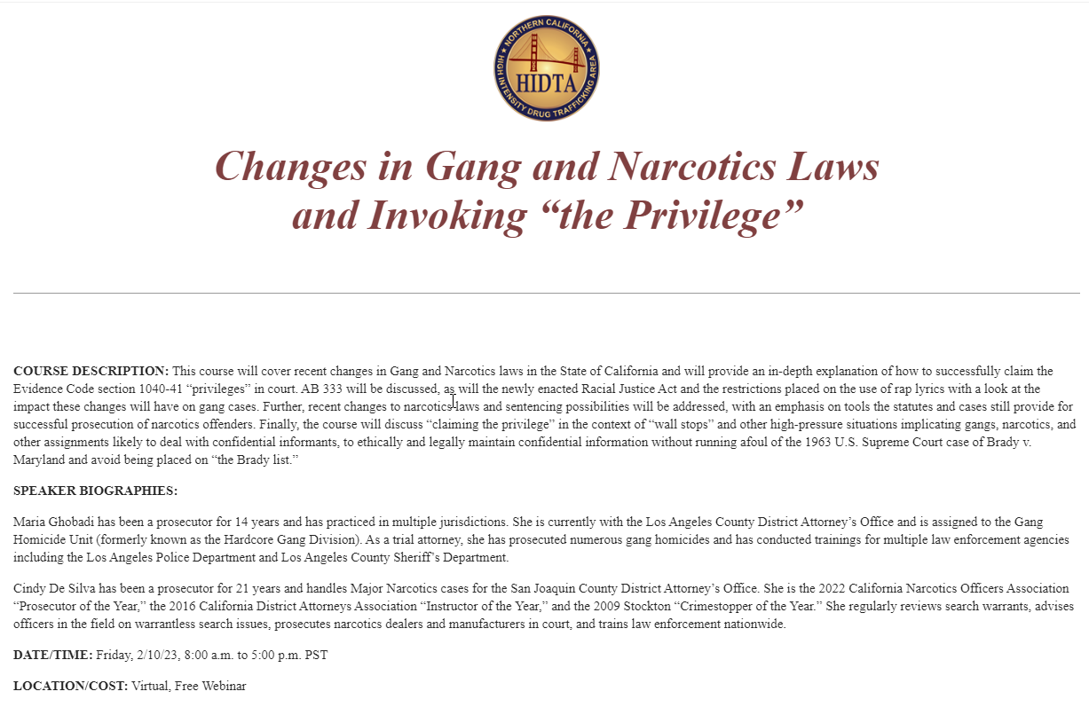 - California Criminal Justice Warrant Services Association Training Workshop (PDF)